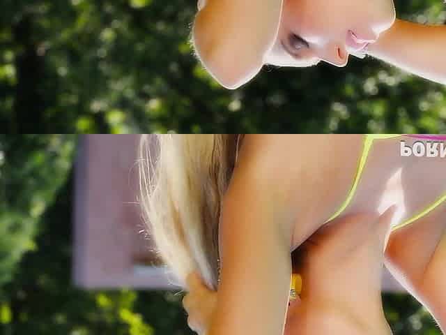 Blonde Honey In A Bikini Rides Studs Pole Outdoors