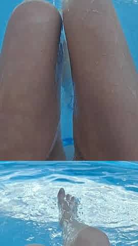 Cleo's massive boobs in a bikini jiggling while floating in the pool