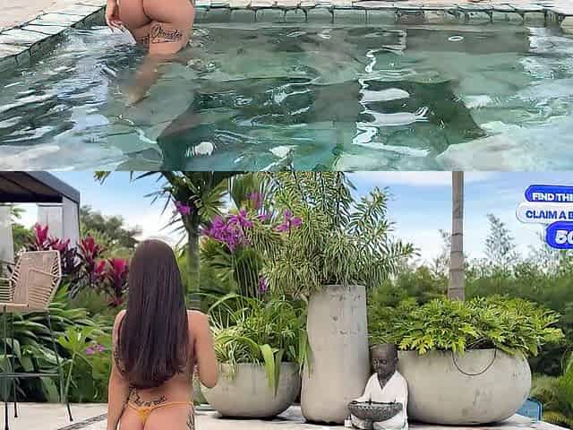 MY STEPMOTHER BATHING IN THE PATIO IN A BIKINI WITH HER UNBELIEVABLE BOOTY