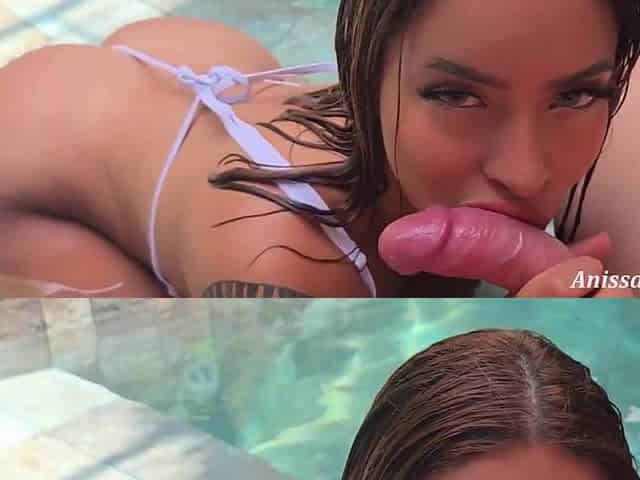 Mi hermanastro se corre en mi cara después de un día de piscina!