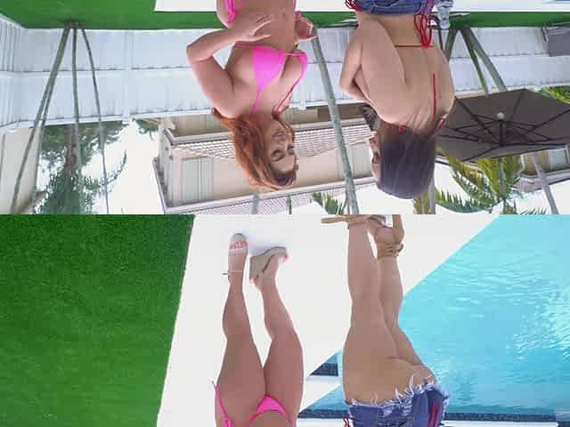Slim babes flaunting their bikini bodies and the girls are so flirty and sexy