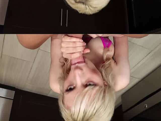 Blonde babe Ellie in bikini knows how to pleasure a hard dick
