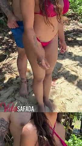 Trio on the beach - this chab pulled her bikini to the side and inserted his very pleasurable weenie into her.