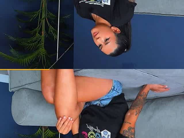 Ebony amateur Marie Star in black thong bikini oils up her black booty and masturbates with vibrator