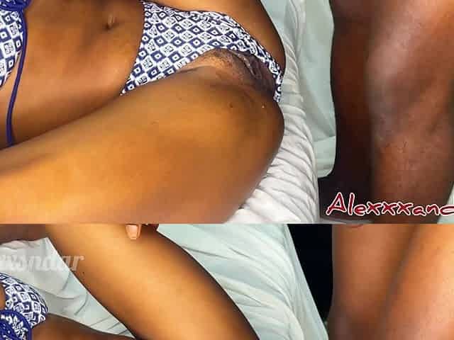 Tiny bikini 21yo nympho lez anal toying in outdoor 3way
