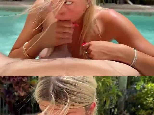 18 Year Old College Freshman Gives Her Friend a Blowjob in the Pool!