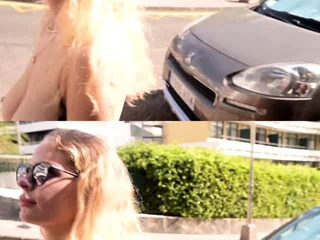Busty blonde Whitney shows off her natural tits and long hair on the beach