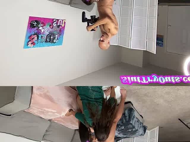 Brunette Sisi Rose giving a titjob before riding a dick in cowgirl