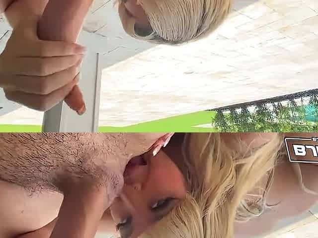 Busty blonde Spencer Scott gives a sloppy blowjob in the pool