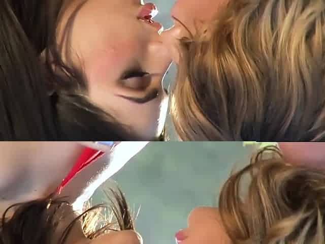 Christiana Cinn and Darcie Dolce 2 bikini babes by the pool start kissing, and have sweet lesbian sex poolside!