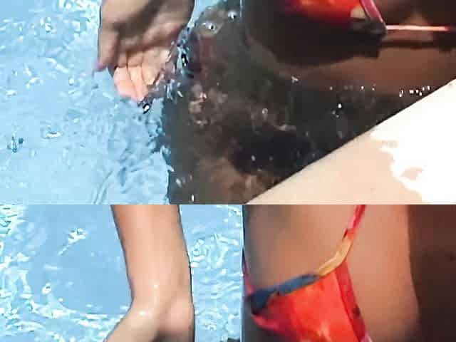 Two hot lesbians, Betzz and Dee Vine, have fun by the pool.