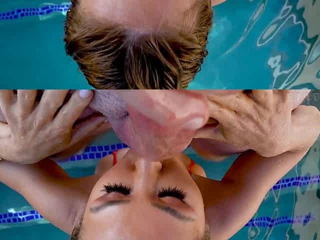Sweet Kianna Dior enjoys while giving a blowjob in the pool