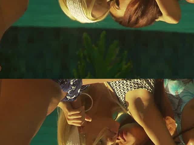 "Lesbian encounter with two bikini clad hotties"