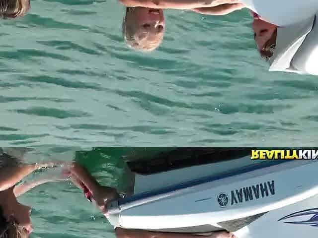 Two Gorgeous Lady on Bikini Swallowed and Ride Hard Cock