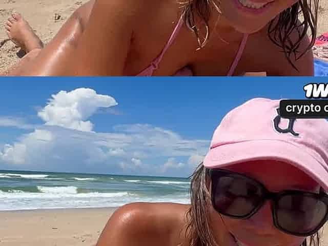 Marjana’s beach tease: bikini aside, pussy peek 😏🌊