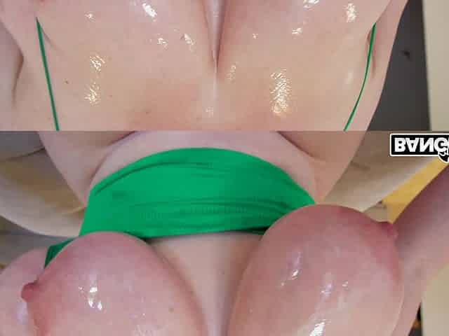 HJ busty amateur teen wanks and grinds POV oiled cock