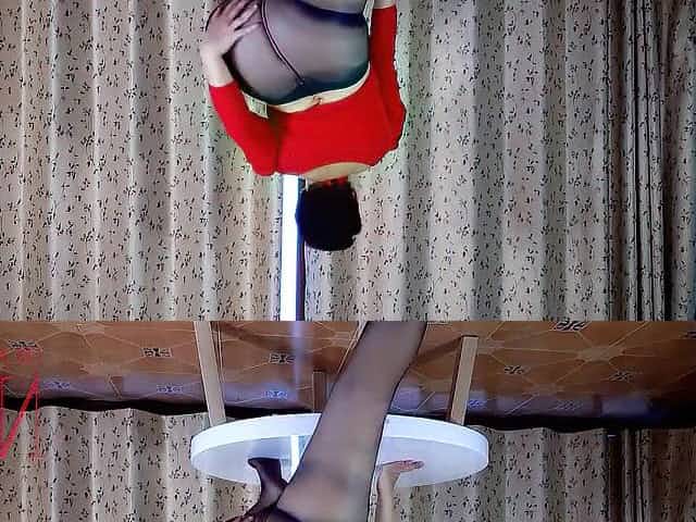 Precious Lady in Hose and Heels. Striptease at the Round