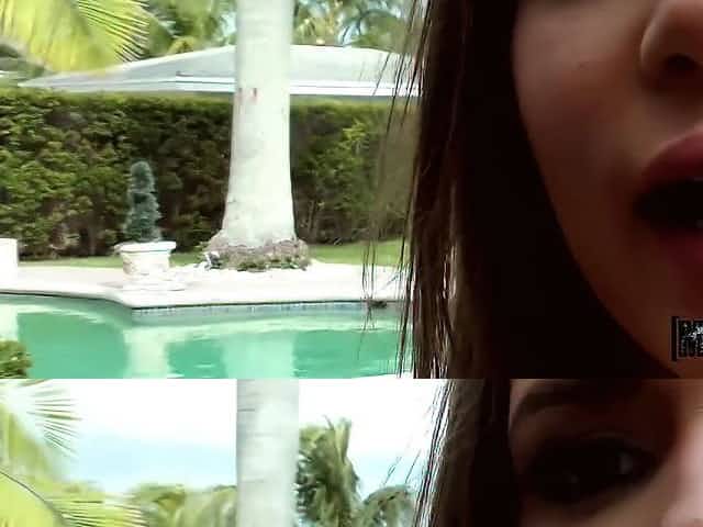 Bosomy Latin babe in bikini Nikki Delano sucks big cock by the pool