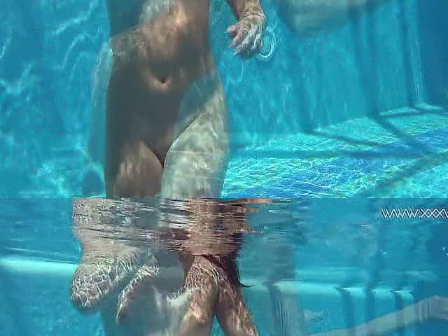 Russian brunette, Jessica Lincoln took off her pink bikini to be naked in the swimming pool
