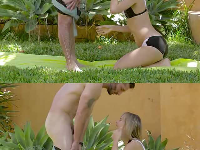Horny neighbor Rharri Rhound plays by the pool and gets fucked