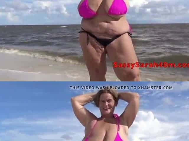 Giant boobs mother I'd like to fuck at the beach changing bikinis