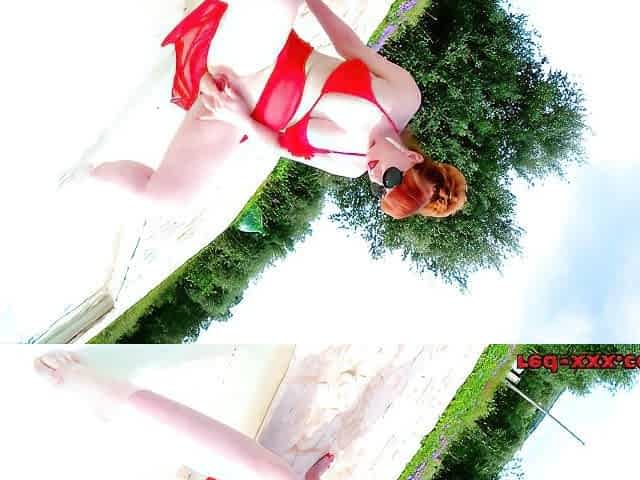 Busty monster tits Bimbo in bikini try out outdoors - fetish solo with busty mature
