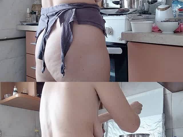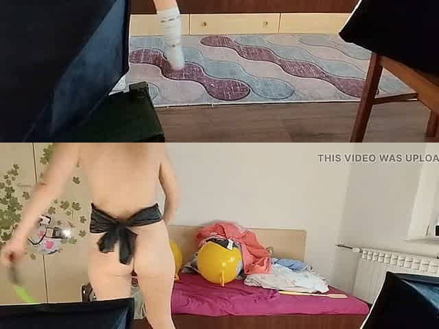 Sexy brunette Mirsur cleans the mansion in the nude, showing off her big tits and big ass