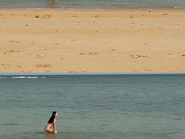 On the beach, I masturbate in front of my stepson and that guy cums in front of me.