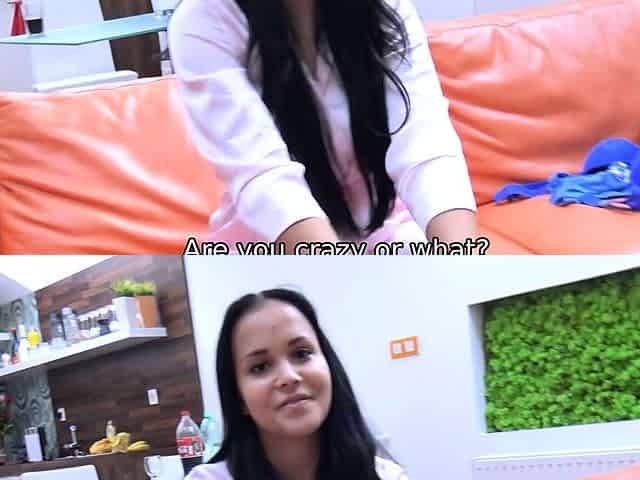 DEBT4k. Bimbo brunette pays the rent using juicy tits