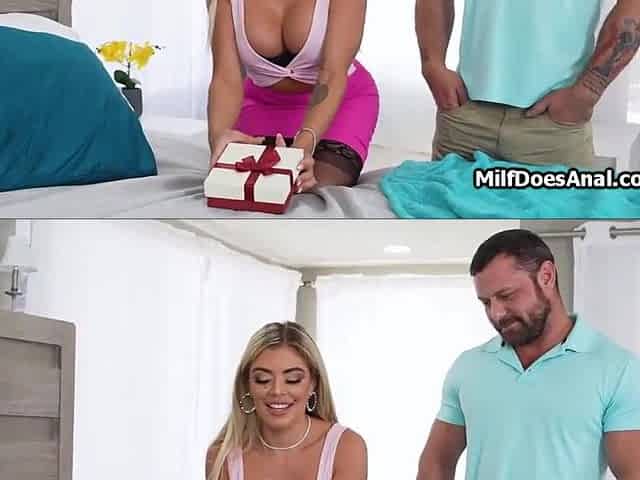 Unpacking a birthday gift from a hawt stepmom, Stepmom gives me a oral sex and her butt for my birthda