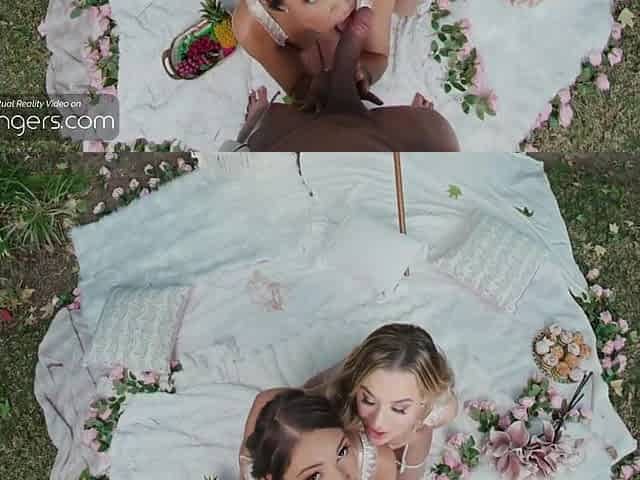 VR Bangers: Hot Blondies In Underware Suck Your Dong And Screw Hard In FFM Fantasy Porn
