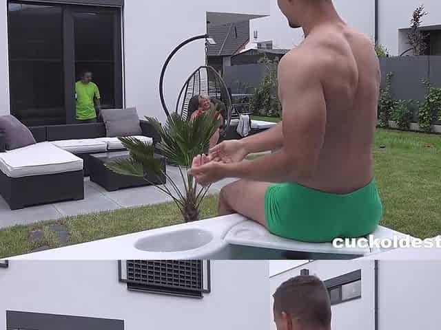 Dominica watches her husband suck her pussy juice off another mans cock - BANG