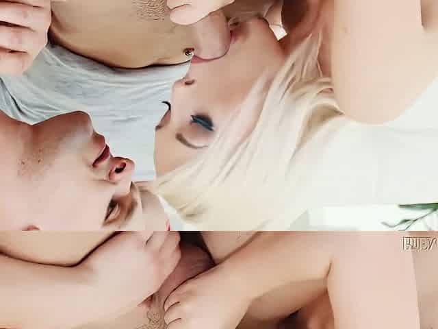 Bi-sexual Threesome With 2 Guys And 1 Hot Blonde Gir