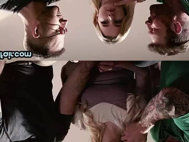 Naughty blonde deepthroating 2 dicks