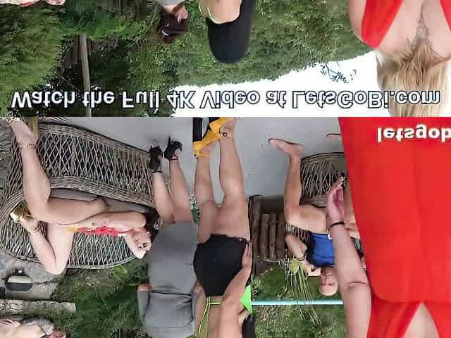 Bisexual Outdoor Foursome with inked bitches on the back porch