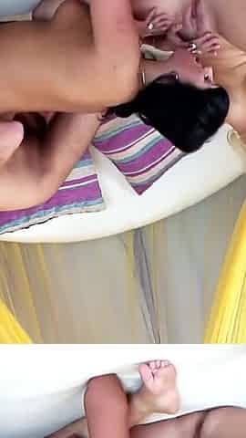 Esposa tira camisinha do marido para ele gozar dentro de sua amiga durante menage.
