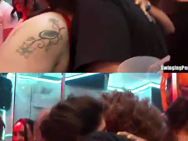 Bi club slags having public sex orgy, Bisexual club chicks licking their slick twats and fucking giant pricks in a public sex or