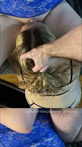 Hot cutie wearing white stockings gets cunt licked in sex swing
