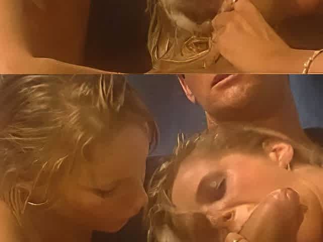 Stroking big cocks and taking loads of cum on tits