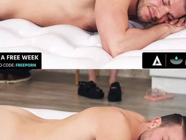 Lustful bitch gets fucked by two men and one of them cums on her ass