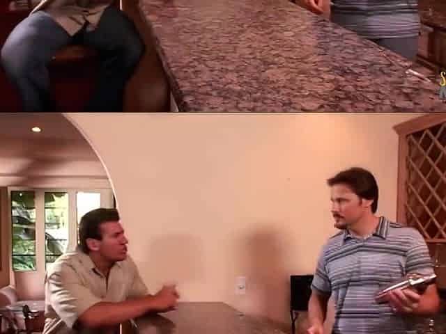 Bitch with blond beauty screws a neighbour next to his wife