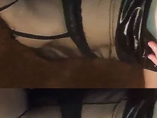 Cock hungry bitch in leather outfit Alyssa Bounty gets fucked hard by stepbrothers cock