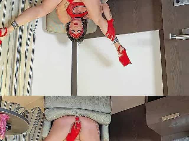 3 incredible squirts from the whore in red
