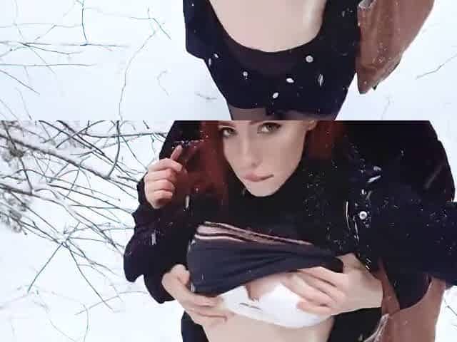 Fucked a Naked Bitch in the Winter Forest and Cummed in Her Mouth - Mollyredwolf