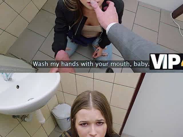 VIP4K. Served by the restroom dominant-bitch. Hawt sex with Olivia Sparkle & Steve Q