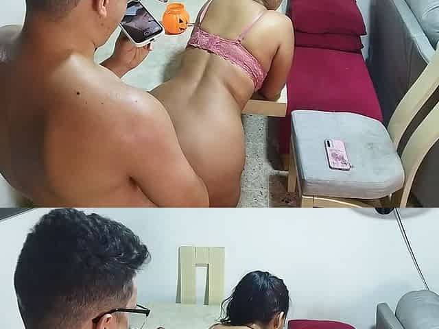 I surprise my stepmom's bitch with my big penis packed in a gift box and the horny chick eats it all