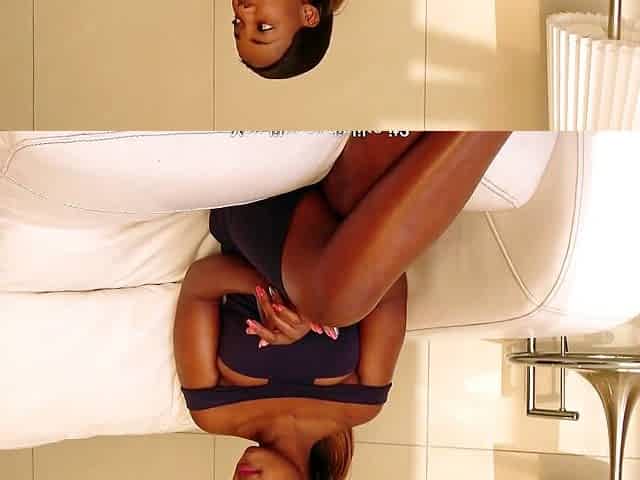 Chocolate Black Bitch Masturbates and plays with chunky cunt outside and squirts