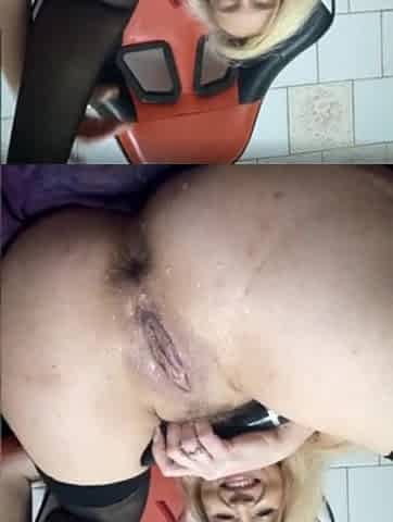 Older bitch enjoys screwing 2 large knobs
