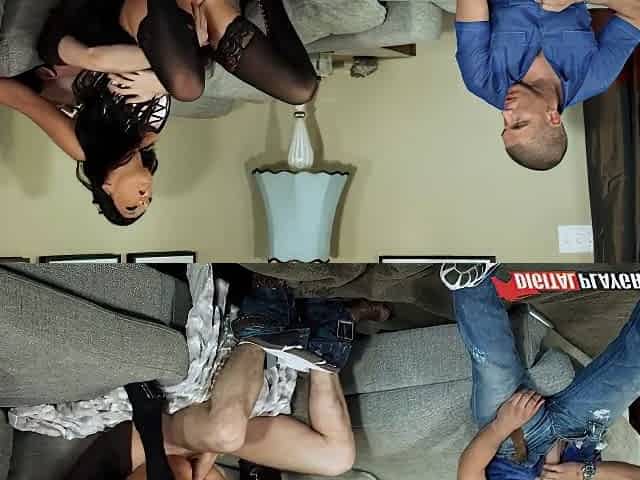 Two Slutty Bitches Are Fucking Two Random Guys At The Same Time, On The Couch