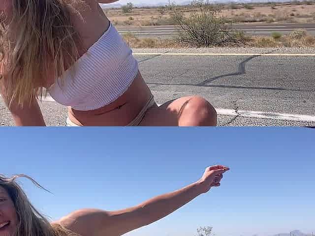 PUBLIC NUDITY DARE: Undressed Roadtrip Bitch Disrobes on the Highway & Drives 5 Hours Naked